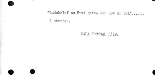 //// "Gudskelof nu ä-vi gifta och det är väl"...... //// 2 strofer. //// DALA FORNSAL /319. ////