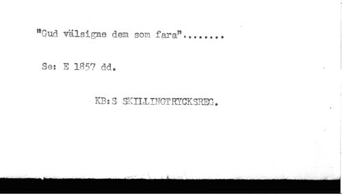 //// "Gud välsigne den som fara"........ //// Se: E 1857 dd. //// KB:S SKILLINGTRYCKSREG. ////