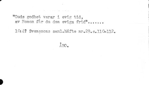 //// a //// - . * <t ... //// "Guds godhet varar 1 evig tid, //// av Honom får du den eviga frid"....... ! //// 10:^? Svenssons saml.häfte nr.2Q.s. 110-112. //// i //// ÅBO. //// t ////