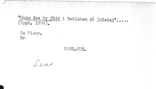 //// "Guå^närfödd i Betlehen på juledas".... //// (Uppt. 1899). //// Ha Visor. //// Dr //// NORD.MUS. ////