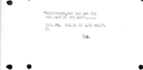 //// "Gullringen.den jag gav dig //// och satt pa din ara"...... //// 2:5. PA. S.L.S. 16 s.34 nr.57. //// N. //// ÅBB. //// t ////
