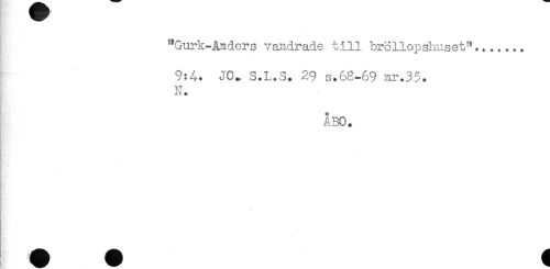 //// "Gurk-Andcrs vädrade till brollopshuset^....... //// 9:A. JO.. S.L.3. 29 s.68-69 nr.35. //// N. //// ÅBO. ////