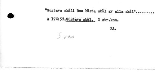 //// "Gustavs skaH Den bästa skål av alla skål"......... //// A 170:58. Gustavs skål. 2 str .kom. //// RA. //// -----............. ...^ ////