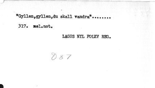 //// "Gyllen,gyllen,du skall vandra"........ //// 317. nel.not. //// LAGUS NYL FOHCV REG. ////