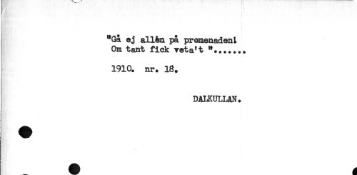 //// "Gå ej allån på promenaden L //// Om tant fick veta't *....... //// 1910. nr. 18. //// DALKULLAN. ////