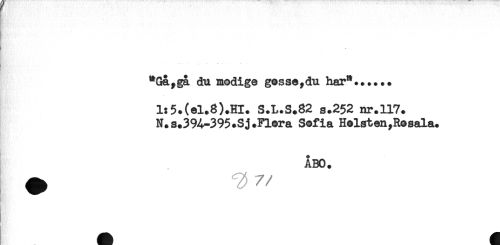 //// Ro' '* //// "Gå,ga du modige gesse,du har".....* //// l:5+(el.8).m. S.L.S.82 s.252 nr.117. //// N.s.39A-395.Sj.Flora Sofia Holsten,Rosala. //// ÅBO. ////