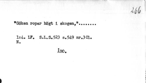 //// "Göken ropar högt i skogen, * +....... //// t //// IF. S.L.S.523 s.549 nr.30L. //// N. //// ÅBO. //// t ////