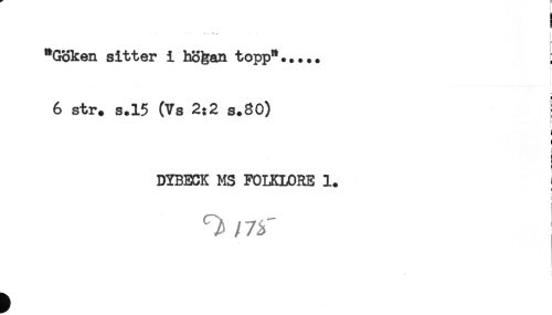 //// t //// ! //// e //// ..... - - - - ! //// "Göken sitter i hö^an topp"..... ; //// 6 str. s.15 (Vs 2:2 s.80) //// ! //// DYBECK MS FOLKLORE 1. //// t //// Qs /7*" //// t ////