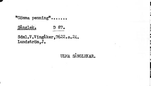 //// e //// c //// i //// i= //// <- //// "Gömma penning".*..... //// i //// Sånglek* D 87* g //// Sdml * V .Vingåker,7622.s* 24* ^ //// Lundström,J* j //// g //// UUJA SÅNGLEKAR. //// j //// a //// H //// ) ////