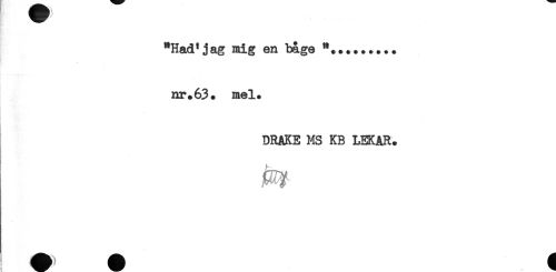 //// "Had*jag mig en båge //// . . //// nr.63. mel. //// ORAKE MS KB LEKAR. ////