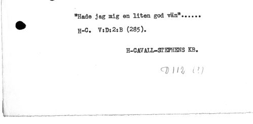 //// "Hade jag mig en liten god vän"...... //// ^ H-C. V:D:2:B (285). //// H-CAVALL-STEPHENS KB. //// I N <; t //// i; ^ ////