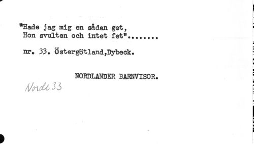 //// ! //// r //// I //// ! //// "Hade jag mig en sadan get^ ^ //// Hon svulten och intet fet"........ //// a //// nr. 33. Östergötland^Dybeck. ! //// ä //// H //// NORDLANDER BARNVISOR. ' //// j //// 5 //// g ////