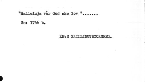 //// "Halleluja var Gud ske lov *.. + ...+ ; //// Se: 1766 b. i //// < //// - //// E //// : //// I* //// KB: S SKILLINGTHYCKSREG. ! //// } //// < //// i //// < //// * c //// ! ////