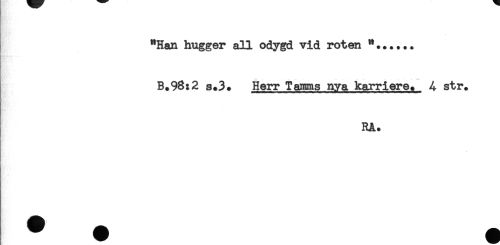 //// "Han hugger all odygd vid roten //// B.98:2 s.3* Herr Tairnas nya karriere. 4 str. //// RA. ////
