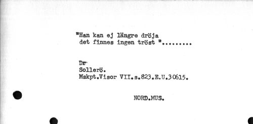 //// "Han kan ej längre dröja //// det finnes ingen tröst //// Di^ //// SollerS. //// Mskpt.Visor VII.S.823.E.U.30615. ////