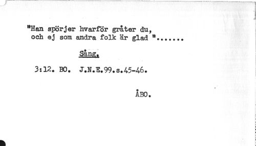 //// : //// "Han spörjer hvarför gråter du, //// och ej som andra folk är glad ..... //// Sang* //// 3:12. BO. ^.N.E.99.s.45-46. ! //// # //// ÅBO. //// . //// t //// [ //// t //// i //// r //// f ////