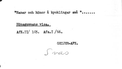 //// Hönsgummans visa. //// AfZ.IT/ 105. Afz.I /66. //// GEIJER-AFZ. ////