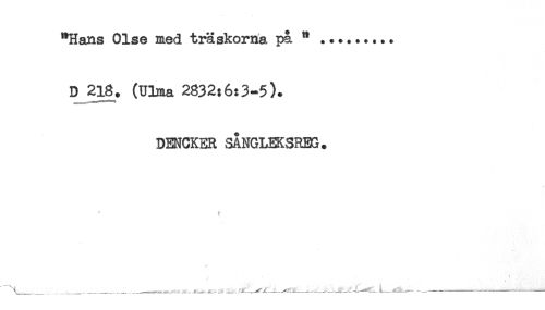 //// "Hans Olse med träskorna pa. "......... //// D 218. (ULna 2832:6:3-5). //// DENCKER SANGLEKSREE. //// t //// ! //// \_____ ^____-___- - __.v - -----^____. -_____-L----------,----- _ ---^-------^---"" * ------" ' .......* ////