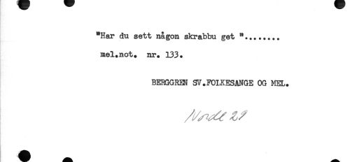 //// "Har du sett någon skrabbu get **........ //// mel.not. nr. 133. //// BERGGREN SV.FOIXESANGE OG MEL. //// t ////