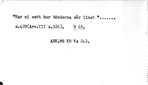 //// "Har ni sett hur bönderna sår linet "....... //// s.409(Arw.III s.326). D 65. //// * //// AW.MS KB Vs 2:2. //// ** //// i- //// H ////
