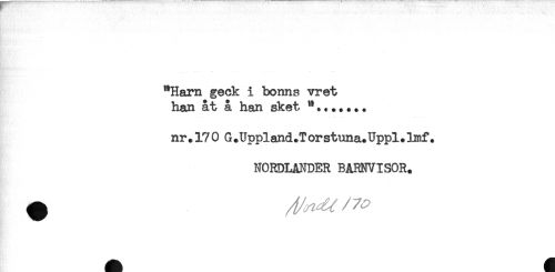 //// * < //// * //// "Ham geck i boans vret //// han åt å han sket *....... //// nr. 170 G.Uppland.Torstuna.Uppl.lcaf. //// NORDLANDER BARNVISOR. ////