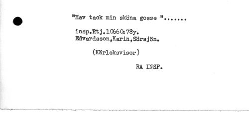 //// ^ "Hav tack min sköna gosse //// insp.Rtj. 10660:78y. //// Edvardsson, Kar in,Sörsj ön. //// (Kärleksvisor) //// RA INSP. ////