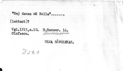 //// - < //// "Hej dansa Mä Bolla^....... //// . //// (lektext)? //// Vgl.l315,s.lO. D,Danser. H. //// Olofsson. ^ //// UM-iA SÅNGLEKAR. ////
