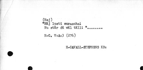 //// * //// / //// (Hej) //// "Haj lusti curaschat //// Nu står dä wäl tälH ........ //// M*' V - //// H-C. V:A:3 (276) //// H-CÅVALL-STEPHENS KB: ////