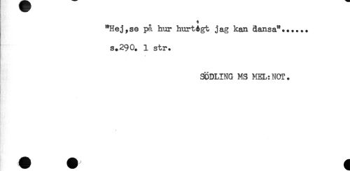 //// "Hejyse på hur hurtigt jag kan dansa"...... //// s.290. 1 str. //// SÖDLING MS MEL:NOT. ////