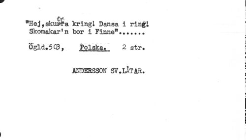 //// ! //// L //// "Hej, skurf a kringt Dansa i ring^ //// Skomakar'n bor i Finne"....... //// Ögld.5C9, Polska. 2 str. f //// B //// ! //// < //// i //// ANDERSSON SV.LAT AR. j //// ) //// H //// g //// r //// ^ //// B //// i //// H //// § ////