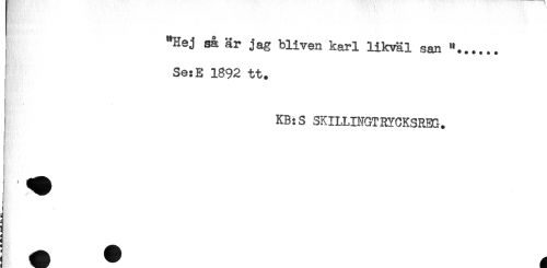 //// "Hej så är jag bliven karl likväl san "...... //// Se:E 1892 tt. //// KB:S SKILLINGT3YCKSREG. //// ; ////