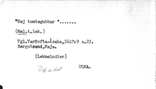 //// : //// ----- . j //// ! //// i //// t //// "Hej tomtegubbar ! //// ! //// (Mel.t.lek.) //// i //// i //// < //// Vgl.Var^ofta-Åsaka,3247:9 s.23. I //// Bergstrand ,Ma ja. i //// (Lekmelodier) //// E //// a ////