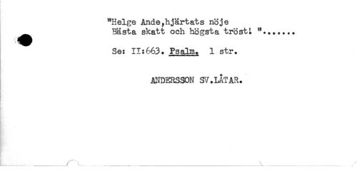 //// "Helge Ande,hjärtats nöje //// Bästa skatt och högsta tröst ^ "*...... //// t- //// Se: 11:663. Psalm. 1 str. //// ANDERSSON SV.LAT AR. //// ! //// . //// * //// B?-.' //// t___ _____/ \ _____ ////