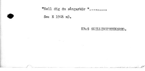 //// "Hell dig du sångarkor "......... //// ^ Se: E 1906 m3. //// KB:S SKILLINGTRYCKSREG. //// - //// ......^-----......... - ------'----------------.- . ... ...'.t,*--_JV^ ////