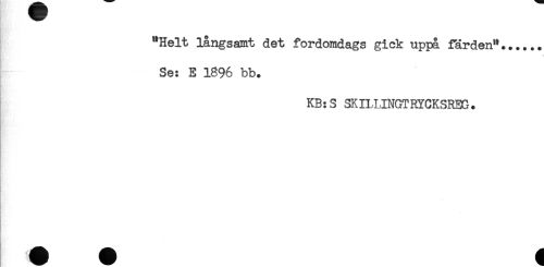 //// "Helt långsamt det fordomdags gick uppå färden"...... //// Se: E 1896 bb. //// KB:S SKILLINGTRYCKSRBG. ////