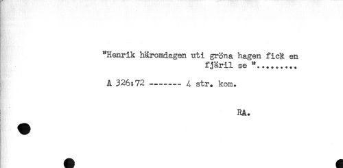 //// "Henrik häromdagen uti gröna hagen fick en //// fjäril se //// A 326:72 --- ^ gtr* kom. //// ; RA. //// * ////