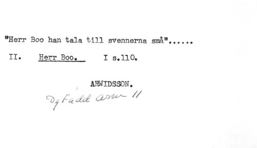 //// "Herr Boo han tala till svennema sma*...... //// II* Herr Boo. I s.110. //// AK^IDSSON. ////
