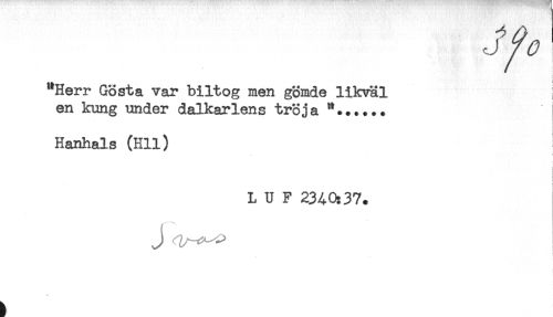 //// jy, //// t //// t //// "Herr Gösta var biltog men gömde likväl //// en kung under dalkarlens tröja "...... //// Hanhals (Hll) //// i //// i //// < i //// L U F 23AO:37. //// j ////