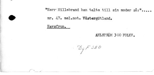 //// ! "Herr'milebrand han talte till sin moder så:*...,. //// [ ^^ nr. 47. mel.not. Västergötland. //// Havsfrun. //// AHLSTRDM 300 FOLKV. //// - //// ! \ ___ __ ////