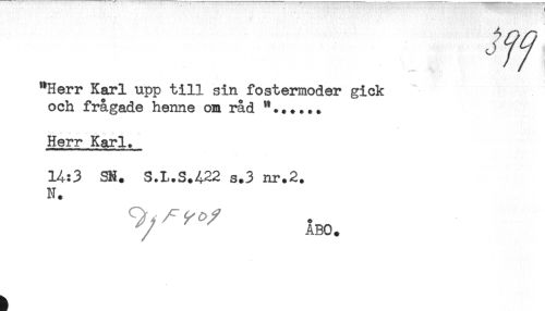 //// "Herr Karl upp till sin fostermoder gick //// och frågade henne om råd ".....* //// Herr Karl. //// 14:3 SN. S.L.S.422 s.3 nr.2. //// N. //// ABO^ ////