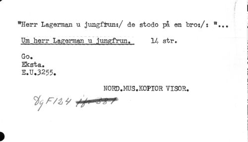 //// ? ! //// i t //// "Herr Lagernian u jungfirun:/ de stodo på en bro:/: "... //// Um herr Lagerman u jungfrun. str * //// Go. ; //// Eksta. ' //// E.U.3255. //// NORD.MUS.KOPIOR VISOR. //// ^ ^ ^^....^ //// t //// i //// ! ////