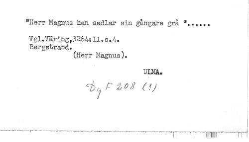 //// "Herr Magnus han sadlar sin gångare grå //// ! //// < //// Vgl.Varing,3264:11.s.4. //// Bergstrand. //// (Herr Magnus ) * //// } //// ULMA. //// t //// / //// ! //// [ //// ' ........-..... ..............--- ////