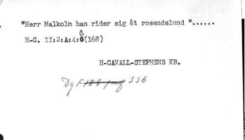 //// "Herr Malkolm han rider sig åt rosendelund "...... j //// 6 ! //// H-C. II:2:A:4:0(168) j //// H-CAVALL-STEPHENS KB. ! //// ^ /-yr f / ^ ^ ^ ////