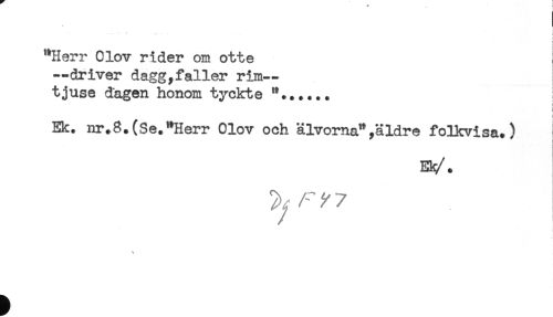 //// . .. - ^ - - //// "Herr Olov rider om otte //// -driver dagg,faller rim- //// tjuse dagen honom tyckte "...... //// ! //// i //// i //// Ek. nr.8.(Se."Herr Olov och älvorna",äldre folkvisa.) //// Eh/. ////