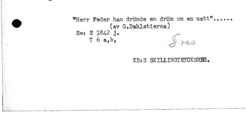 //// ) //// ^ "Herr Peder han drömde en dröm om en natt"...... //// * (av G.Dahlstierna) //// Se: E 18A2 j. //// KB:S SKILUNGTRYCKSREG. //// * ////