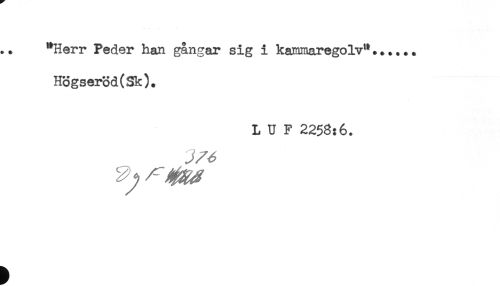 //// "Herr Peder han gångar sig i kamiaaregolv"...... //// Högseröd(Sk). //// L U F 2258:6. ////