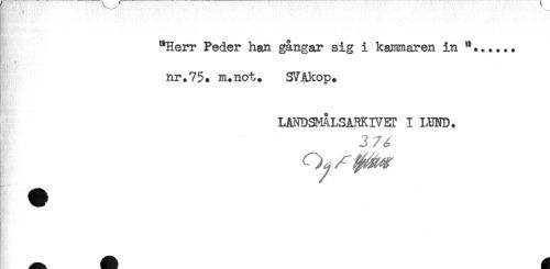 //// nr.75* m.not* SVÅkop. //// LANDSMÅLS ARKIVET I LUND. //// Hw * //// - ////