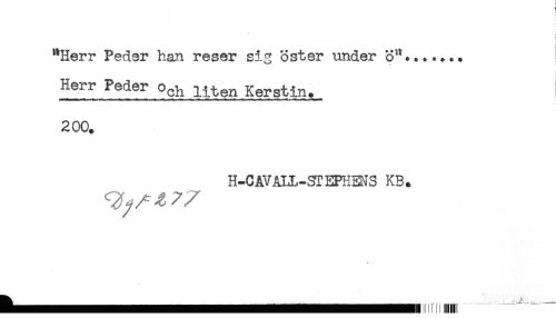 //// "Herr Peder han reser sig öster under ö"..*.*.. //// Herr Peder o^ liten Kerstin. //// 200. //// H-CAVALL-STEPHENS KB. //// t //// ------^^ III 11 ////