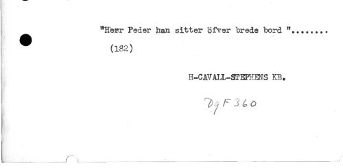 //// "Hbrr Peder han sitter ofver brede bord //// ^ (182) //// H-CAVALL-STEPHENS KB. //// f ^éa ////