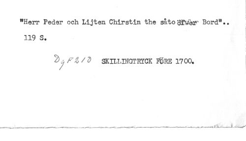 //// "Herr Peder och Lijten Chirstin the så t o öfwer' Bord".. //// 119 S. //// ^ / ^ SKUJ ,DIGT RYCK F&RE 1700. ////